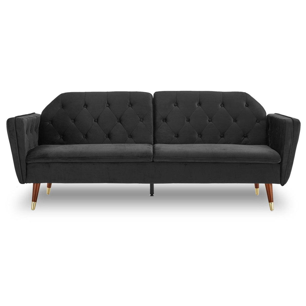 Faux Velvet Tufted Sofa Bed Couch Futon - Black