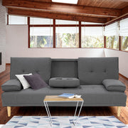 2 Seat Rochester Linen Fabric Sofa Bed Lounge Couch Futon Furniture Suite - Dark Grey