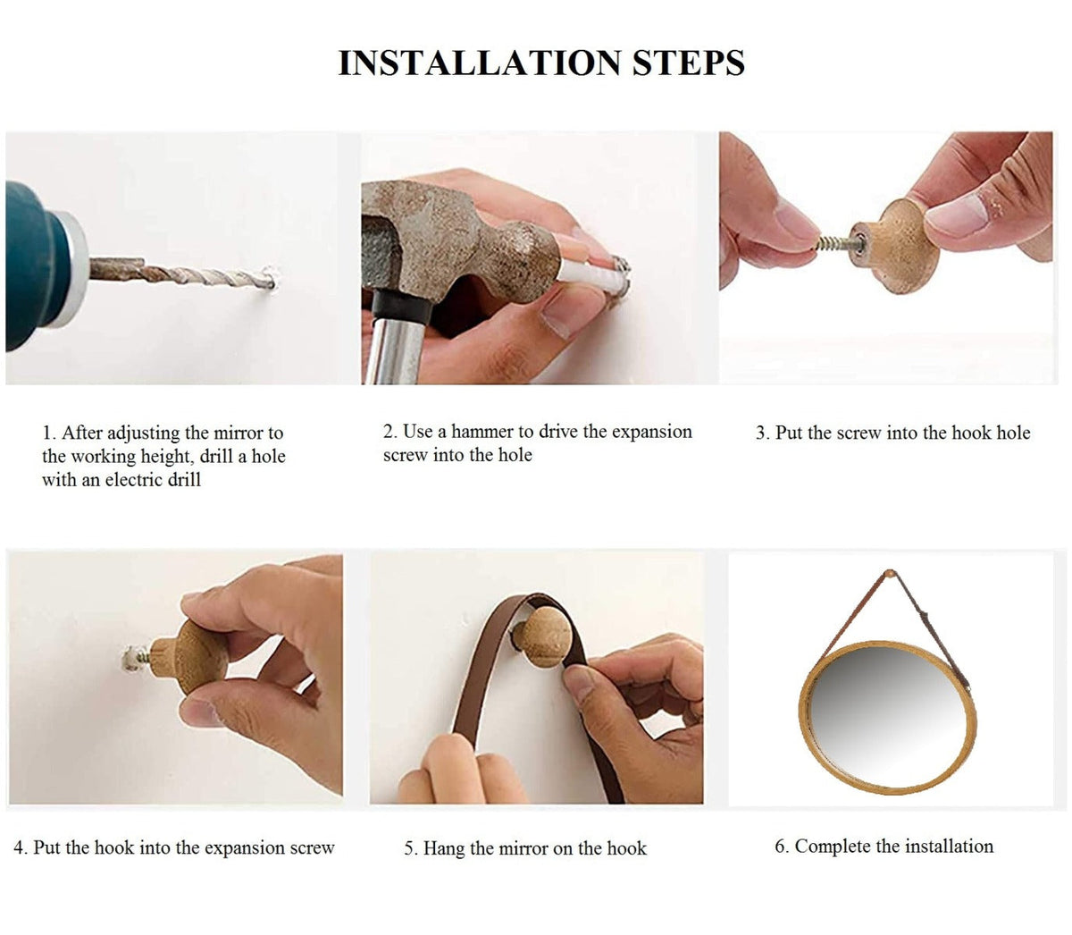 CARLA HOME Hanging Round Wall Mirror 45 cm - Solid Bamboo Frame and Adjustable Leather Strap for Bathroom and Bedroom