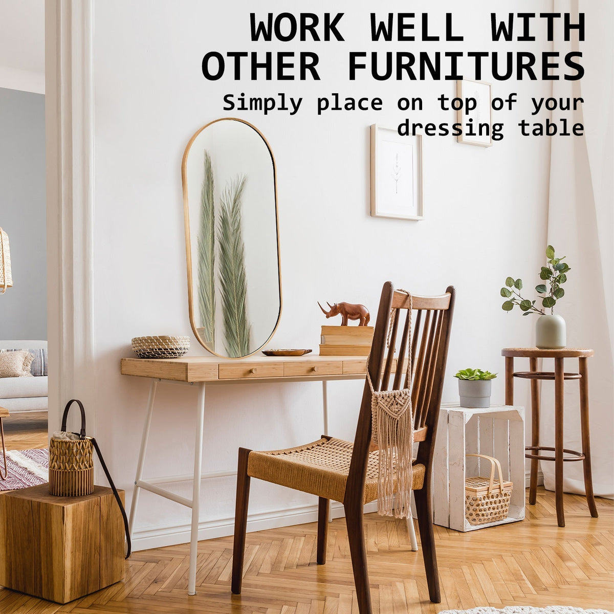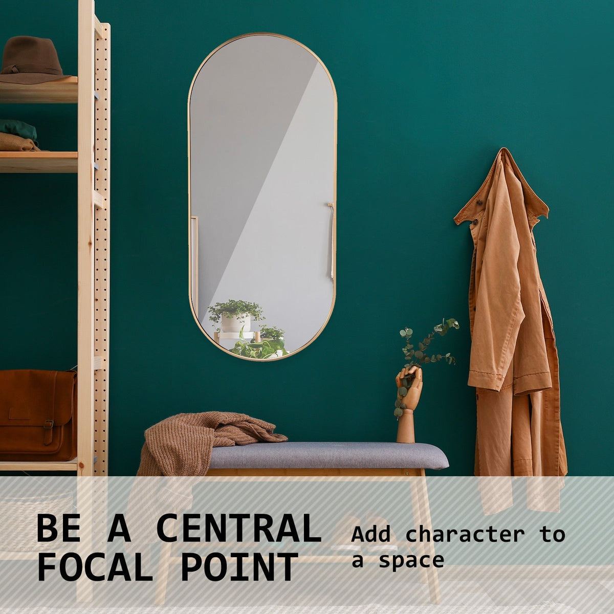 The oval mirror is stylish and neat in design and comes with a 2.8cm thickness slender aluminium frame that is sure to capture the attention of all. Plus, its curved lines all around will become a central focal point in any room which makes spaces feel more inviting and relaxing.