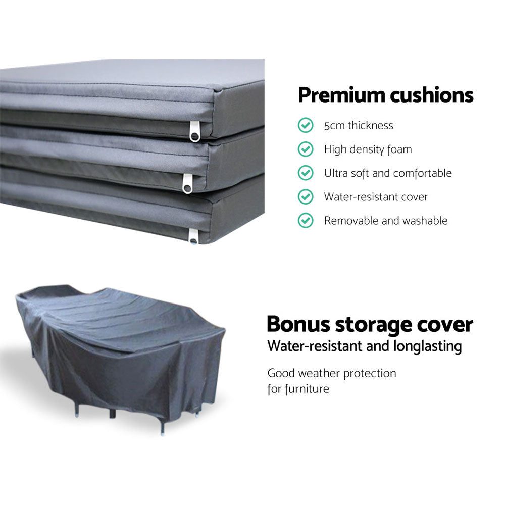 Gardeon Outdoor Dining Set 9 Piece Wicker Lounge Setting Black