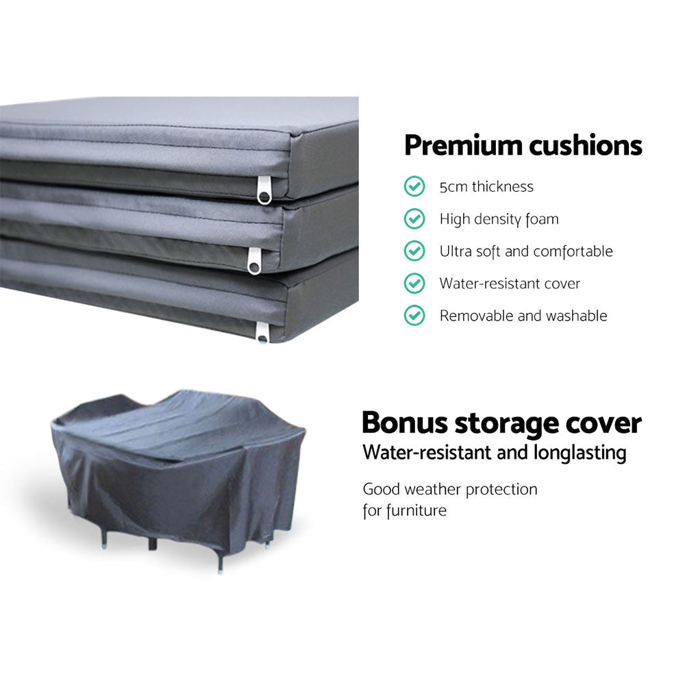Gardeon Outdoor Dining Set 7 Piece Wicker Lounge Setting Black