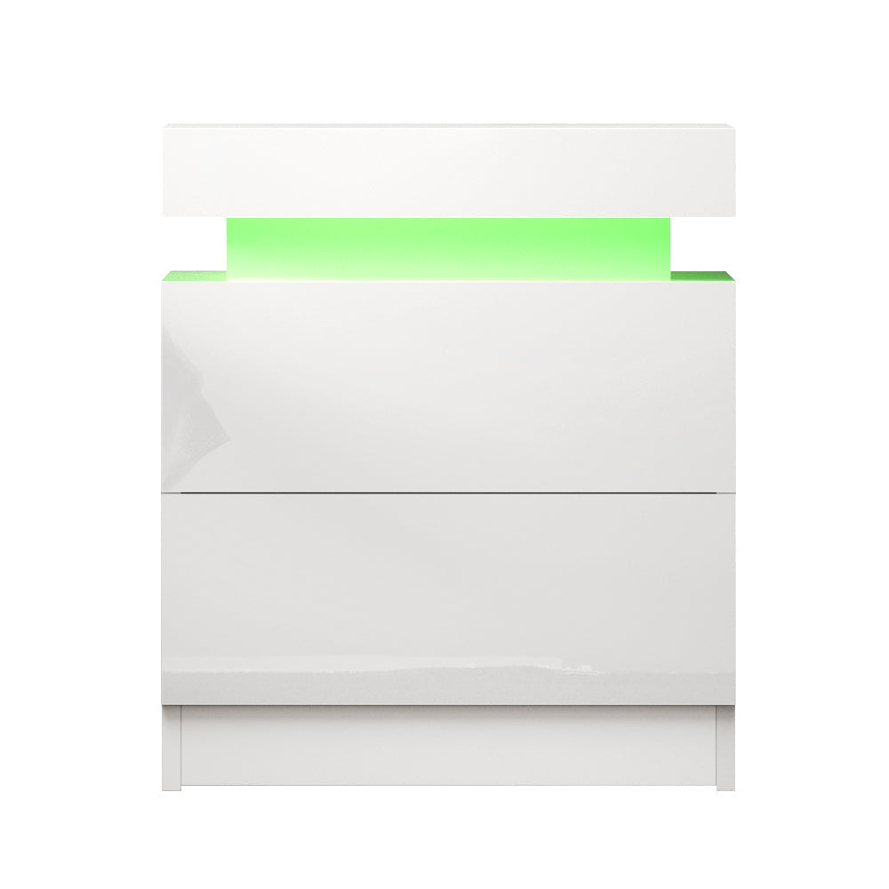 Tired of fumbling in the dark for a light switch in the middle of the night? With our Artiss LED Bedside Table, your problems are solved. The bedside table comes with built-in LED lighting that can be customised into 16 different colours to suit your preference. Not only will it create a beautiful ambience, it will also save you from buying extra bedside lamps or nightlights. Two deep drawers sliding on smooth anti-rust runners provide ample storage space. There is also a top storage compartment that opens with a lift-up lid like a treasure trunk, which you can fittingly fill with your own personal treasures. Better still, the handle-free design gives it a modern vibe that stands out from the mundane. Quality made with 15mm thick melamine particle board and UV high gloss finish, the bedside table is durable and easy to maintain. And it will be the perfect addition to your modern bedroom with its contemporary and linear design. Or you can keep one in the living room to wow all your houseguests.