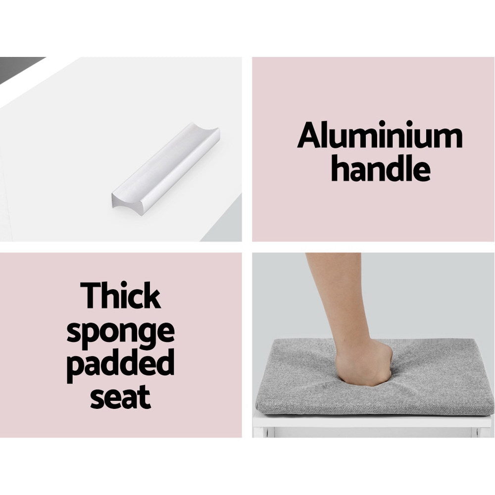 Beauty is in the eye of the beholder. And our Artiss Dressing Table Set is definitely a beauty to behold. Made of sturdy 15mm thick particle board with melamine, the dressing table is embellished with many practical features. There is a hidden cabinet with three shelves behind the large sliding mirror and one spacious drawer with a sleek aluminium handle, providing ample storage space for your cosmetics, perfumes, jewelleries, fashion accessories and other personal essentials. The table offers ample legroom too for you to groom with minimum hassle and a well-padded stool completes the ensemble. Not least, the smooth and impeccable white finish makes for an easy blend with any décor as well as hassle-free maintenance. Create your own personal styling zone with our beautiful and functional dressing table set.
