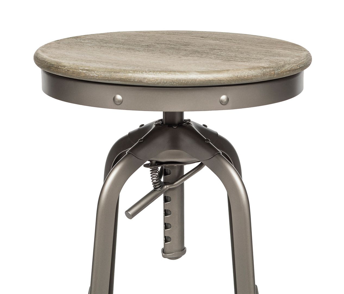 Industrial Height Adjustable Swivel Bar Stool with Oak Wood Top - Grey Finish