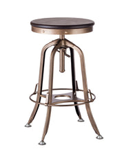 Industrial Wooden Height Adjustable Swivel Bar Stool - French Brass