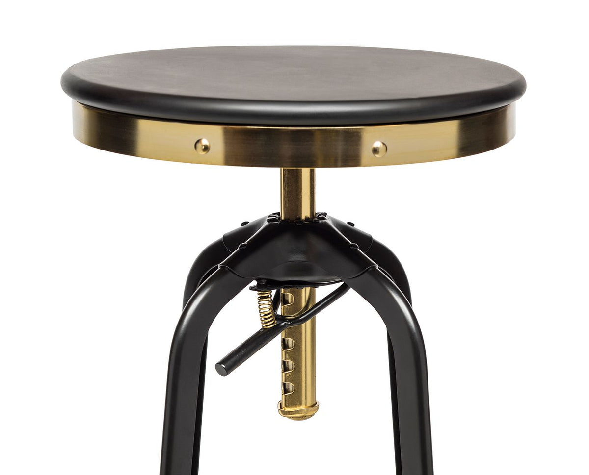 Industrial Wooden Height Adjustable Swivel Bar Stool - Gold Black